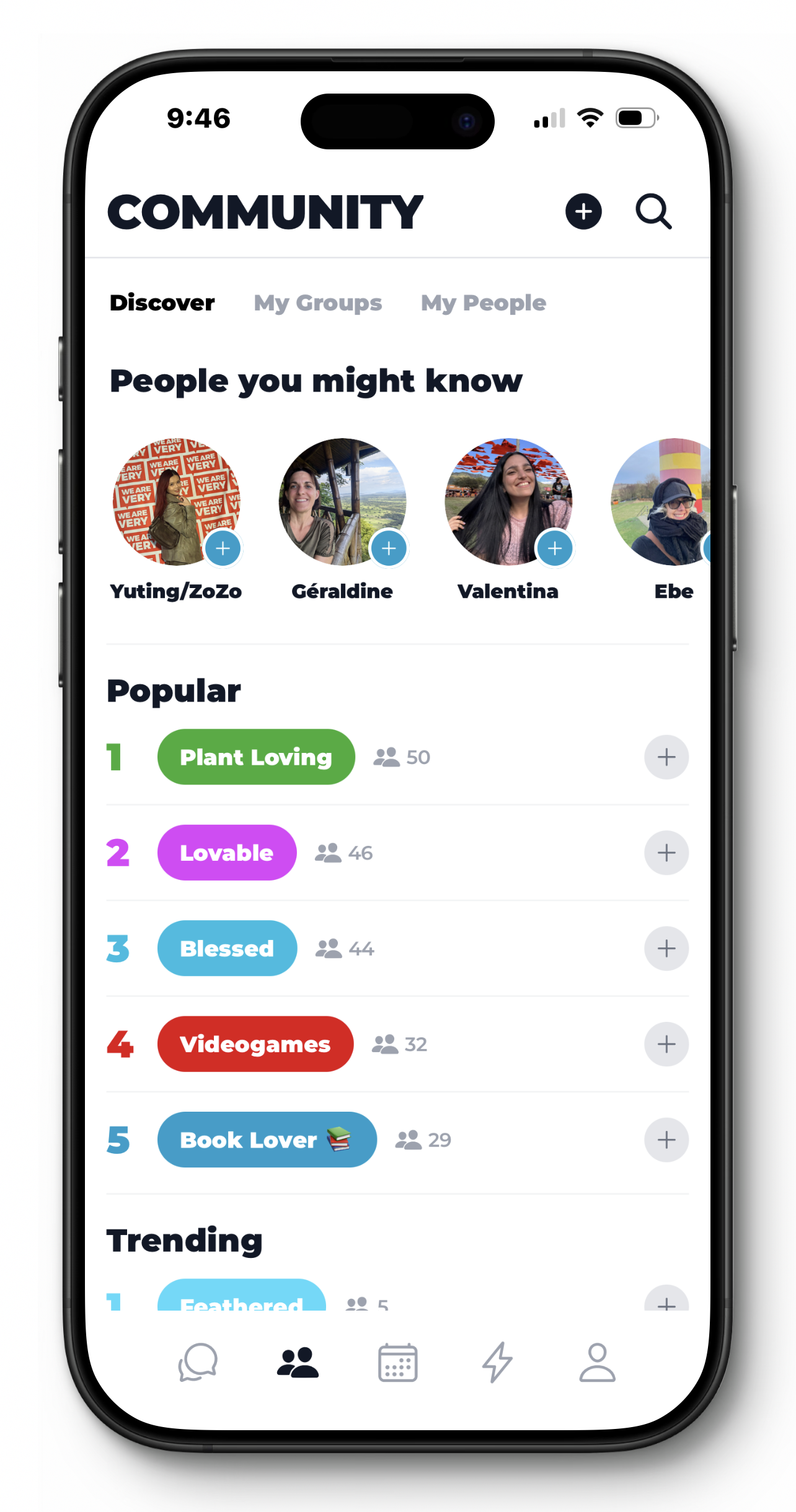 Discover new groups and connect with people. Or start a new group with something you are very about.