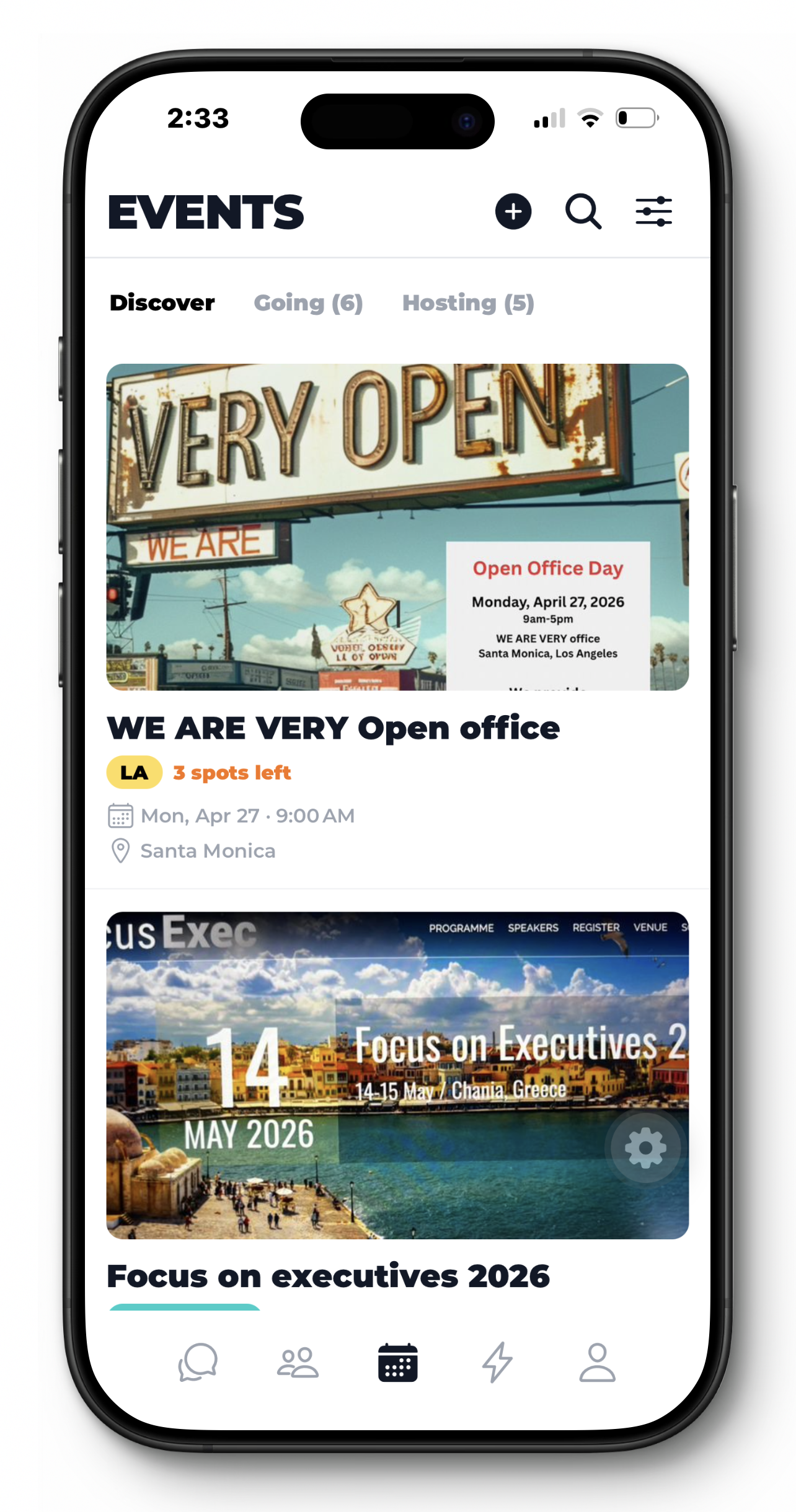 WE ARE VERY is built by an independent creative team, not a tech giant. No venture capital growth hacks. No data harvesting. No trying to keep you scrolling forever. Just a simple, beautiful app for finding your people – online and offline, all over the planet.