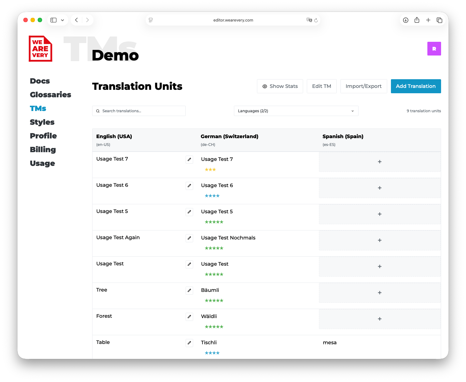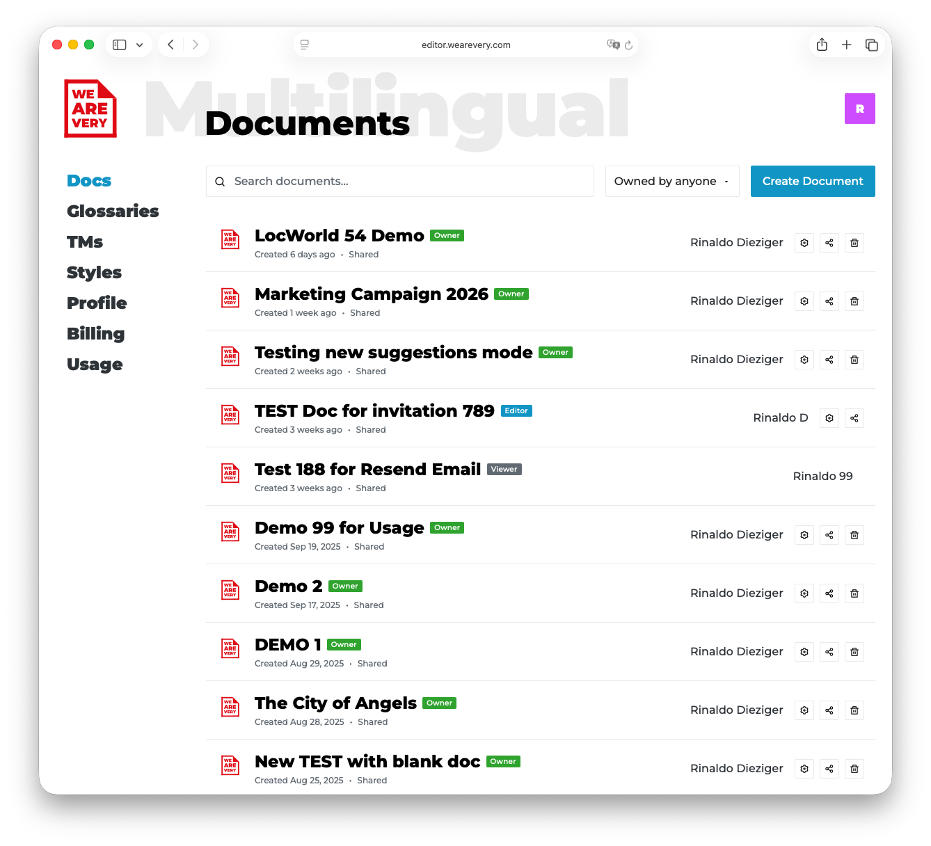 The WE ARE VERY Editor is made for content and localization teams. And everyone in your company who wants to prompt and translate content that stays true to your branding 🚀 and terminology.